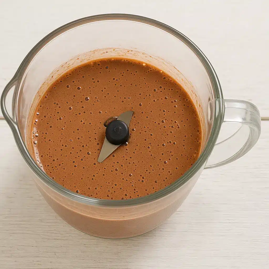 מוסיפים את השמנת לבלנדר וטוחנים את הכל היטב עד שהשוקולד נמס ומתקבלת תערובת אחידה ואוורירית.