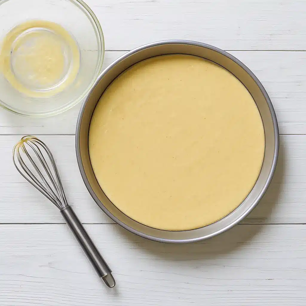 יוצקים את הבלילה לתבנית, מיישרים ואופים אפייה ראשונה של כ-8 דקות עד שהתחתית מתחילה להתייצב ולהזהיב.
